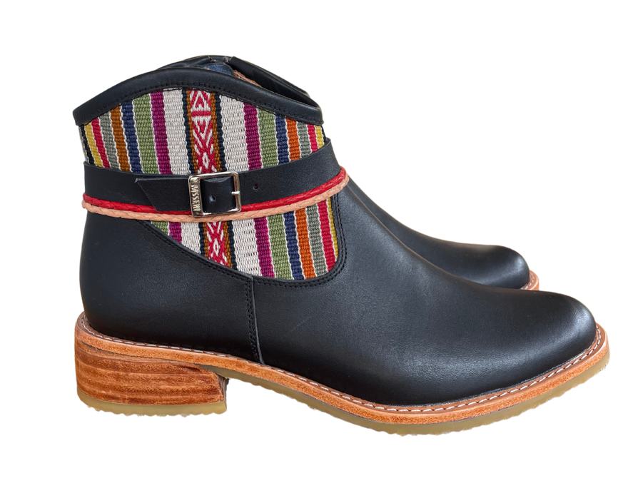 With its classic PASSERI handwoven alpaca wool textiles, fine leather, and attractive buckle, this boot transitions perfectly from day to night. Pair them with jeans, dresses, skirts . . . the possibilities are endless! So what the heck, why not dance all night long, feel great in the process, and step into your power and confidence with ease? PASSERI - your new best friend in footwear!